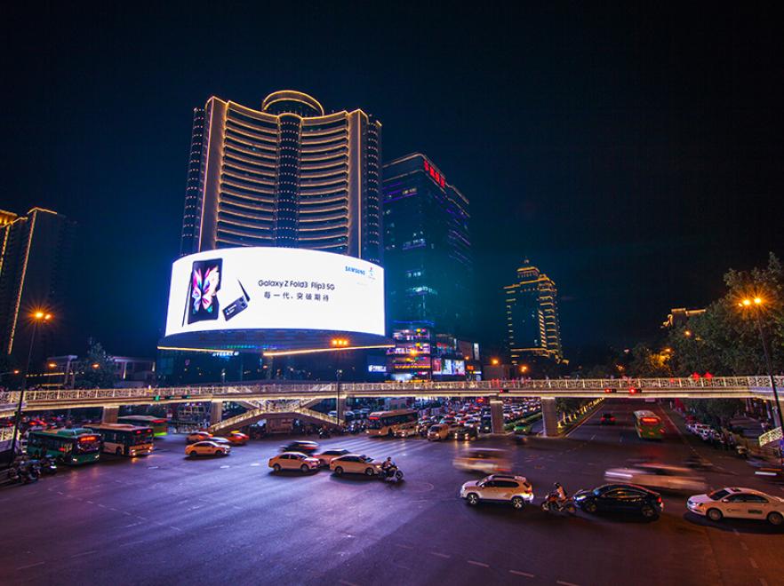 西安小寨国贸LED广告屏,位于西安城市第一商圈,占据优越地理位置,吸引众多国际、国内外知名企业、品牌常年广告投放,现已升级改造为总面积达1908㎡、分辨率达标准8K、西北地区排名第一的户外裸眼3D大屏。