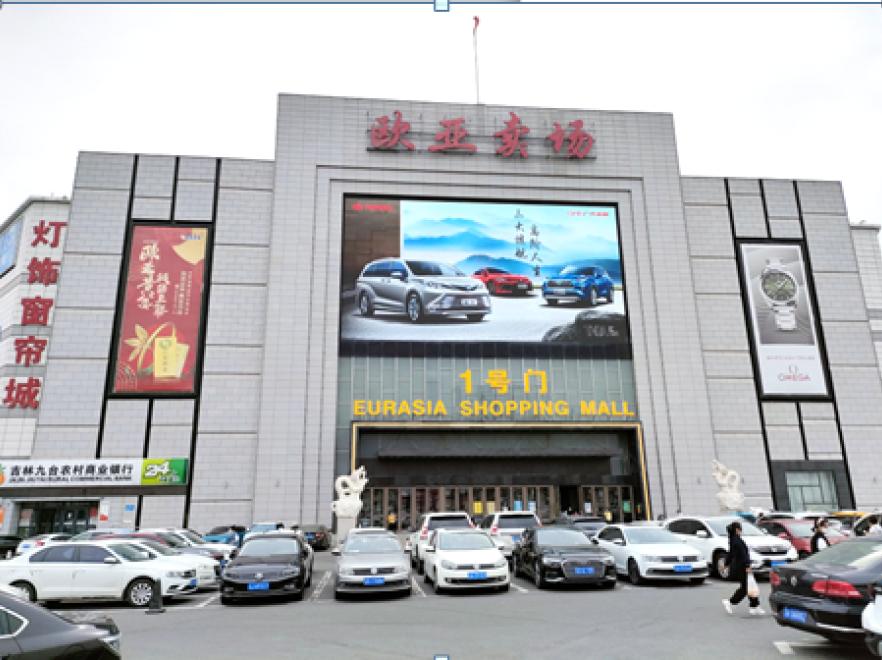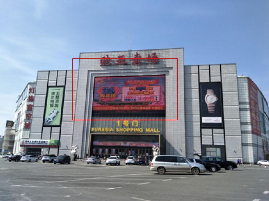 媒体位于长春市欧亚卖场1号门,欧亚卖场是世界单体最大的商业综合体,媒体高度适中,视野良好,是企业宣传形象及推广产品理想媒体。