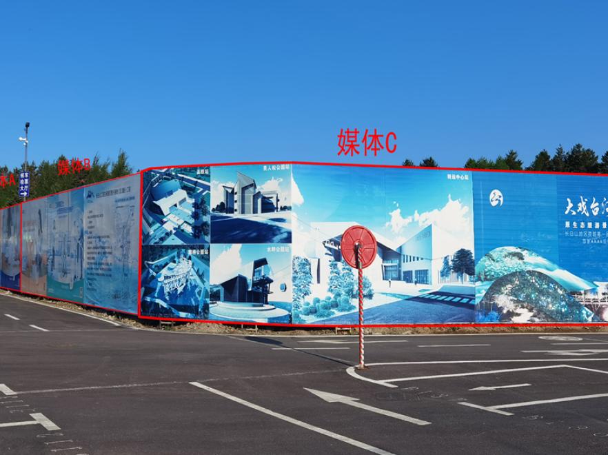 媒体位于长白山二道白河镇北坡集散中心停车场内,该集散中心停车场是游客游览长白山北景区的必经之处,其中私家车停车泊位850个,旅游巴士58个。媒体高度适中,位置显著,是企业面对国内外游客树立品牌、宣传产品的绝佳选择。