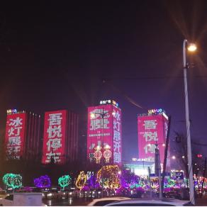 长春市绿园区吾悦广场,是长春市重要商业综合体,地标性建筑,楼体灯光秀广告。